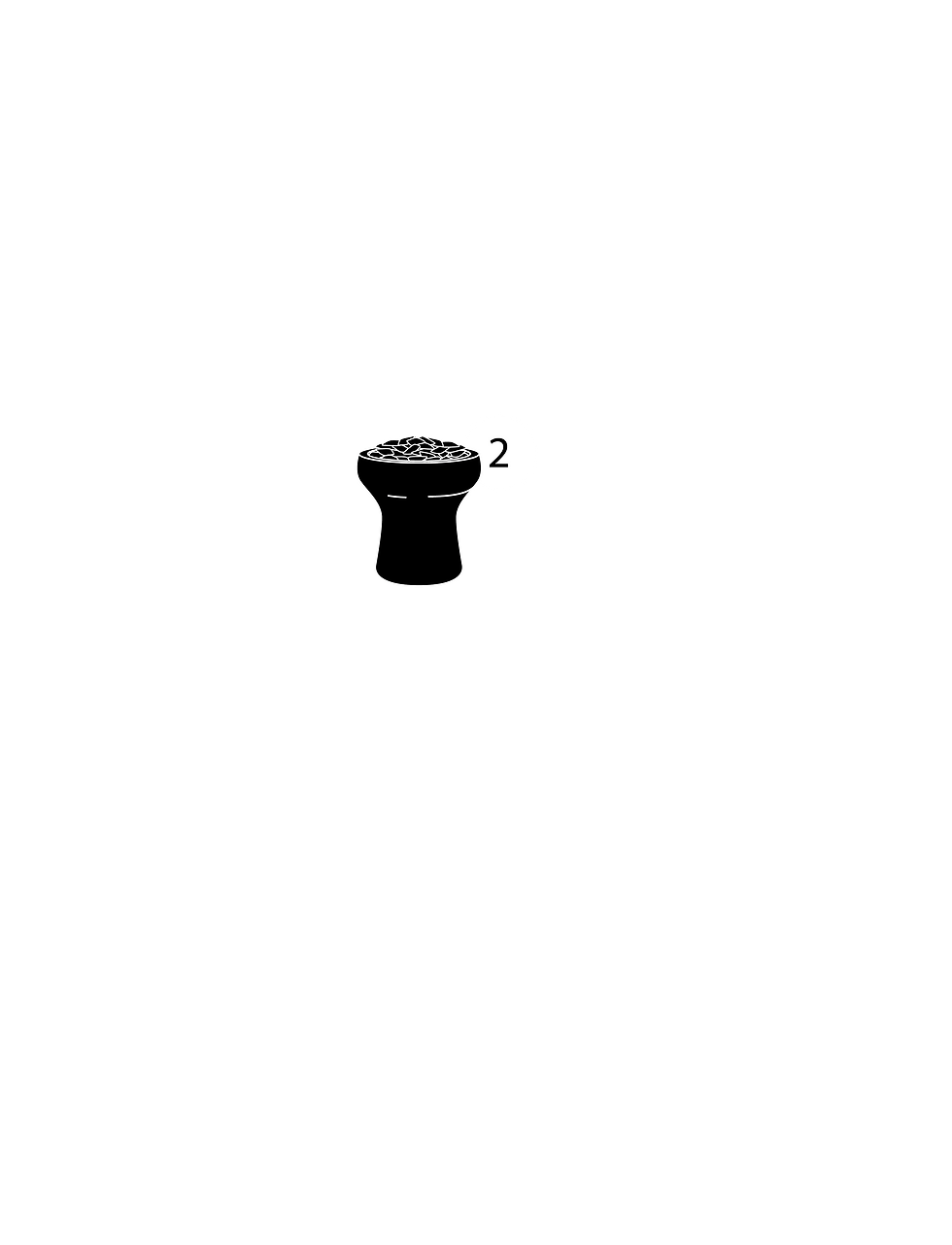 הניחו 3 קוביות גחלים גודל 25 מ"מ ב-HMD, הניחו לראש להתחמם למשך 5 דקות והתחילו לעשן.